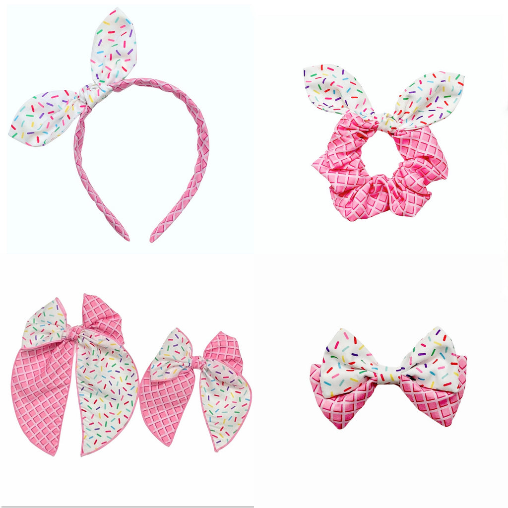 (PREORDER) KNOTTED BOW HEADBAND-Pink Ice Cream Cone